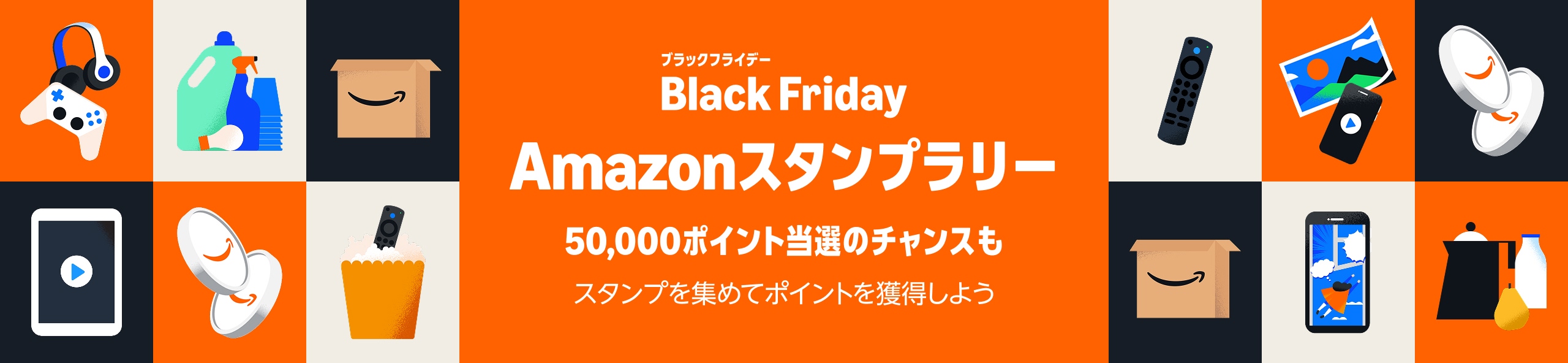 Amazon ブラックフライデー終了までにdアカウントとAmazonアカウントを連携の上、お買い物時にdポイントをご利用いただいたお客様には、ご利用ポイントに応じて抽選で最大10,000 dポイントが当たるスタンプラリーにご参加いただけます。
